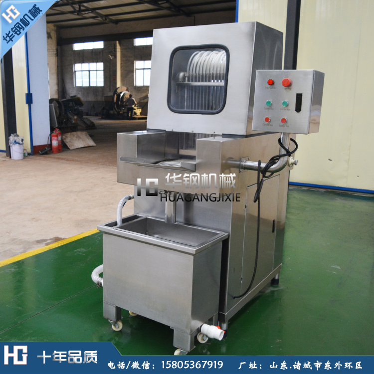 鹽水注射機是利用機械裝置將腌制劑通過注射針注射入產品,使之在產品內均勻分布達到快速腌制、增加調味、保持肉食營養、強化口感的目的。
