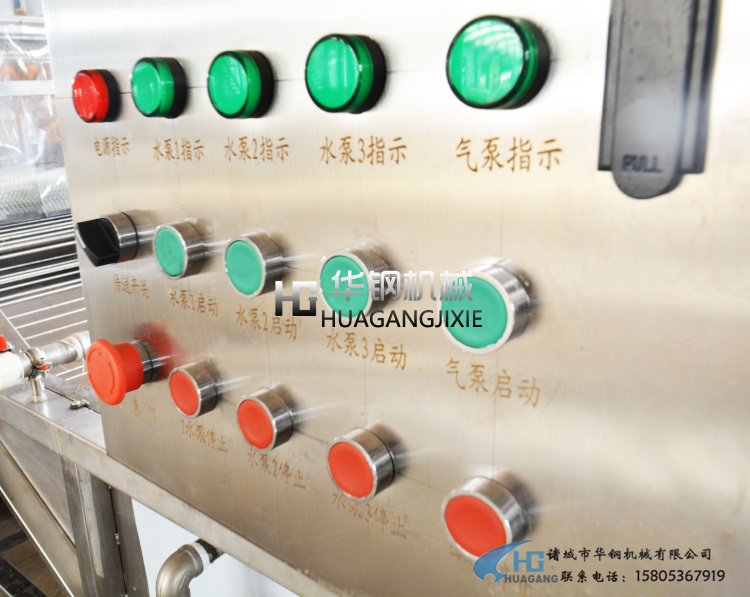 1.設(shè)備帶有循環(huán)水泵和過濾水箱,實(shí)現(xiàn)清洗用水循環(huán)使用,尤其是針對(duì)火龍果清洗,污泥多,清洗效果好,節(jié)約用水,根據(jù)實(shí)際生產(chǎn)情況補(bǔ)充更換新的水;