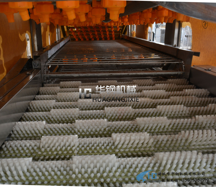 3.設(shè)備帶有高壓噴淋裝置,在清洗結(jié)束后輸送至下道工序過程中,對(duì)產(chǎn)品進(jìn)行二次氣泡清洗,可加入臭氧殺 菌裝置,延長產(chǎn)品的保質(zhì)期;
