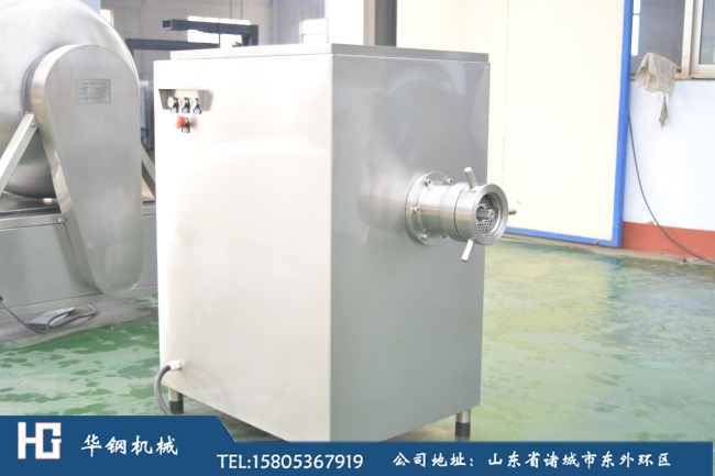 諸城華鋼機械凍肉絞肉機是肉制品生產行業中通用性高、使用范圍廣的一種肉食加工設備。它是依靠螺桿將料斗箱中的原料肉推到預切板處,通過螺桿的旋轉擠壓使孔板與絞刀產生相對質運轉,從而將原料肉切成顆粒形狀,確保了肉餡的均勻性。通過孔板的不同組合可達到理想的要求的不同肉餡。