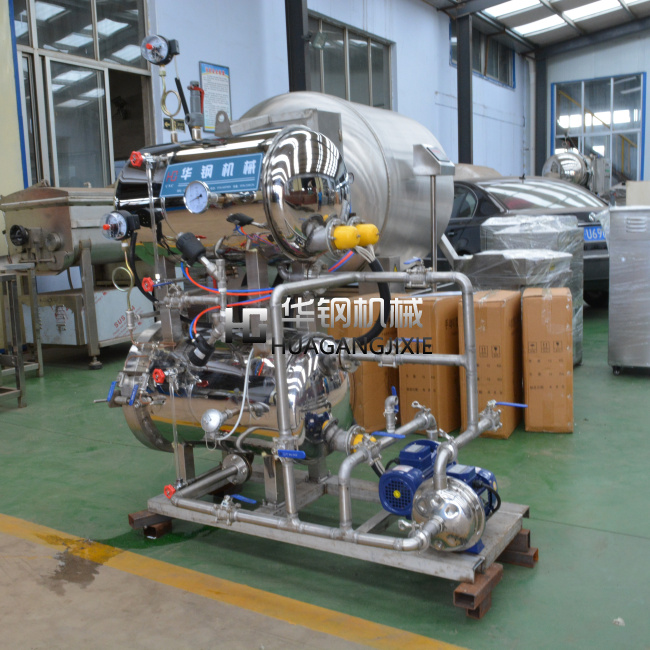 2.下罐為處理罐,內置大功率加熱裝置殺 菌的升溫和保溫及降溫在此罐進行。