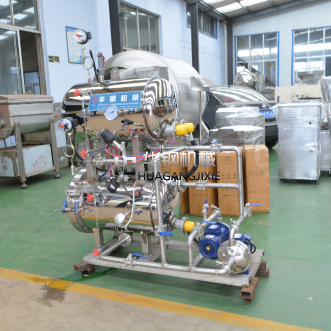 3.下罐升溫采用三面加熱方式再加上循環(huán)泵對水的閉式循環(huán)使鍋內熱分布更加均勻,解決殺 菌時的死角問題。