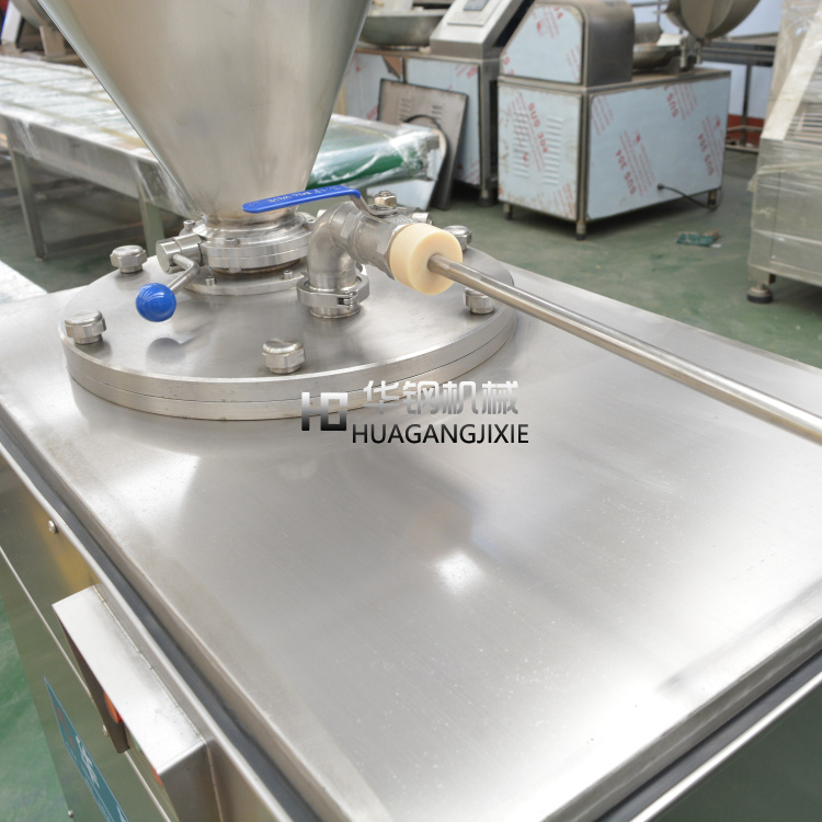 液壓灌腸機是加工腸類制品的設備,能灌制大、中、小各種規格的腸制品。此機外形美觀、做工精良、操作方便、使用可靠。機器的料斗、閥門、灌腸管以及整機外包裝均采用不銹鋼制造,符合食品衛生要求。