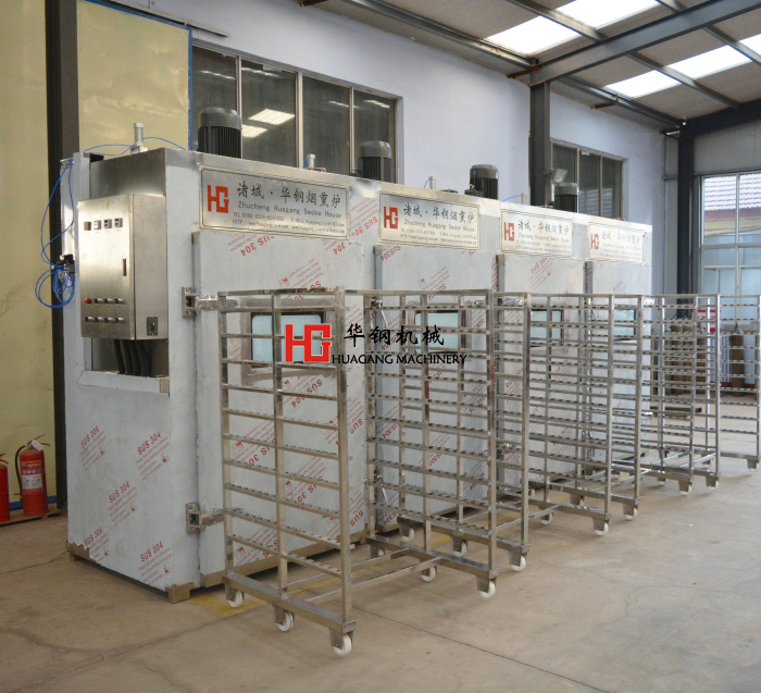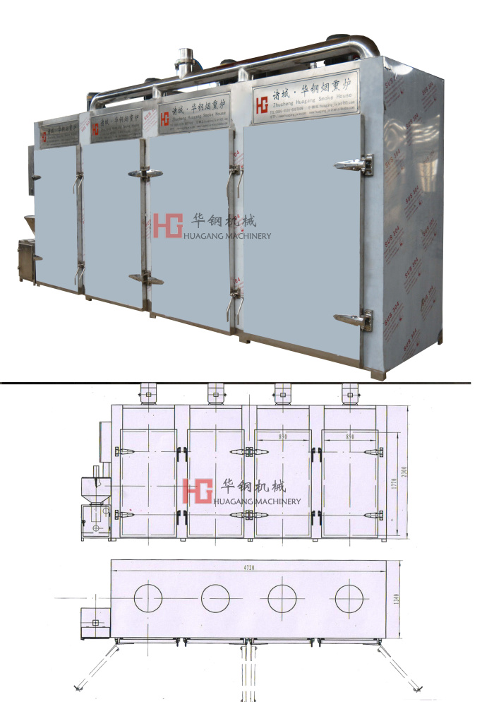 臘肉煙熏爐直銷-臘肉機器一提起臘肉,我們肯定不陌生,有很多人會說不就是豬肉經過曬干煙熏后的加工出來的食品嘛,對了,從理論上說可以這么理解,看似簡單的臘肉如果說加工不好的話,臘肉機器那吃起來的口感是大有不同的,有些人喜歡自己用柴火點上火上面加一個架子,把臘肉用繩子栓起來掛在桿上,用扇子一邊閃火一遍熏,可想而知,那柴火揮發出來的煙灰會隨著風沾腐到食品上,因為我們都知道,木材產生的煙灰里面含有致癌物,長期食用會對身體造成危害,那么,很多人又特別喜歡吃,又擔心吃了對身體不好,那怎么辦呢。哈哈,不用擔心,為了大家身體健康以及加工效率上,我們經過準確的研究,計算合理設計出了一種能夠提高工作效率,過濾致癌物,提高產品品質的煙熏爐。