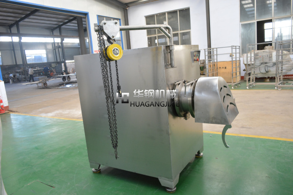 凍肉絞肉機是肉制品生產行業中通用性高、使用范圍廣的一種肉食加工設備。它是依靠螺桿將料斗箱中的原料肉推到預切板處,通過螺桿的旋轉擠壓使孔板與絞刀產生相對質運轉,從而將原料肉切成顆粒形狀,確保了肉餡的均勻性。通過孔板的不同組合可達到理想的要求的不同肉餡。