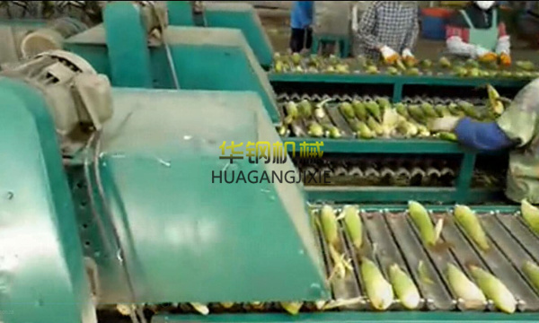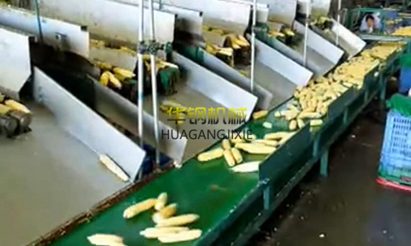 人工修整果穗,對禿尖、有蟲口的要動刀修整,要保證切面平整。人工切段時應下刀迅速,否則會壓碎玉米粒,影響出品率,并保證切面與隨軸垂直。否則,影響美觀。刀不快要磨,刀架松的要緊,刀片薄的要加厚。切后清洗,用流動的清水清洗果穗,洗去玉米的花絲和污物。清洗過程要迅速,不能讓果穗長時間在水中浸泡,以免造成營養成分流失。洗后分級,在投放于周轉筐的過程中順便進行分級。以穗長為依據分四級:12-14、14-16、16-18、18-20厘米。