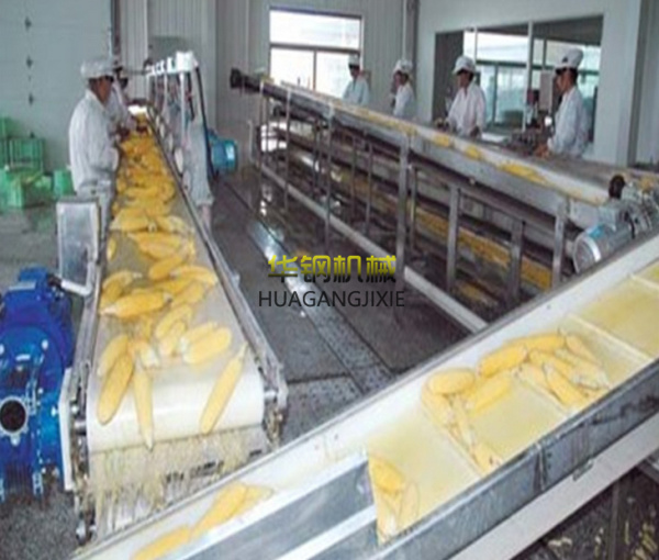 在漂燙水中加入0.1%的檸檬酸、1%的食鹽,溫度為95℃-100℃,時間為10-12分鐘。也可以用蒸汽進行漂燙。以熱水漂燙為好。漂燙可以使玉米中的氣體排放出來而且可以破壞玉米組織中酶的活性,殺滅果穗表面的有毒生物,減少病原菌基數,為提高殺菌效果奠定基礎。
