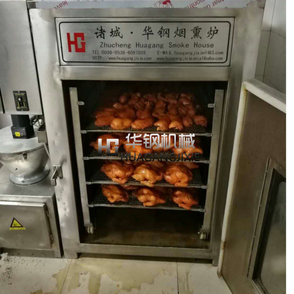 華鋼糖熏爐是各種香腸,熟食,熏雞、烤鴨等肉產品不可缺少的設備之一,具有干燥、蒸煮、烤、煙熏、排風等功能。根據客戶的反饋以及市場的需求,經過多年的摸索探索研制生產,煙熏的過程縮短,提高生產效率;并能控制煙熏料的量,幫助生產企業有效控制了成本,對產品進行了性能更高,設備更合理的改進,使其加熱速度和煙熏效果都達到了理想的效果。