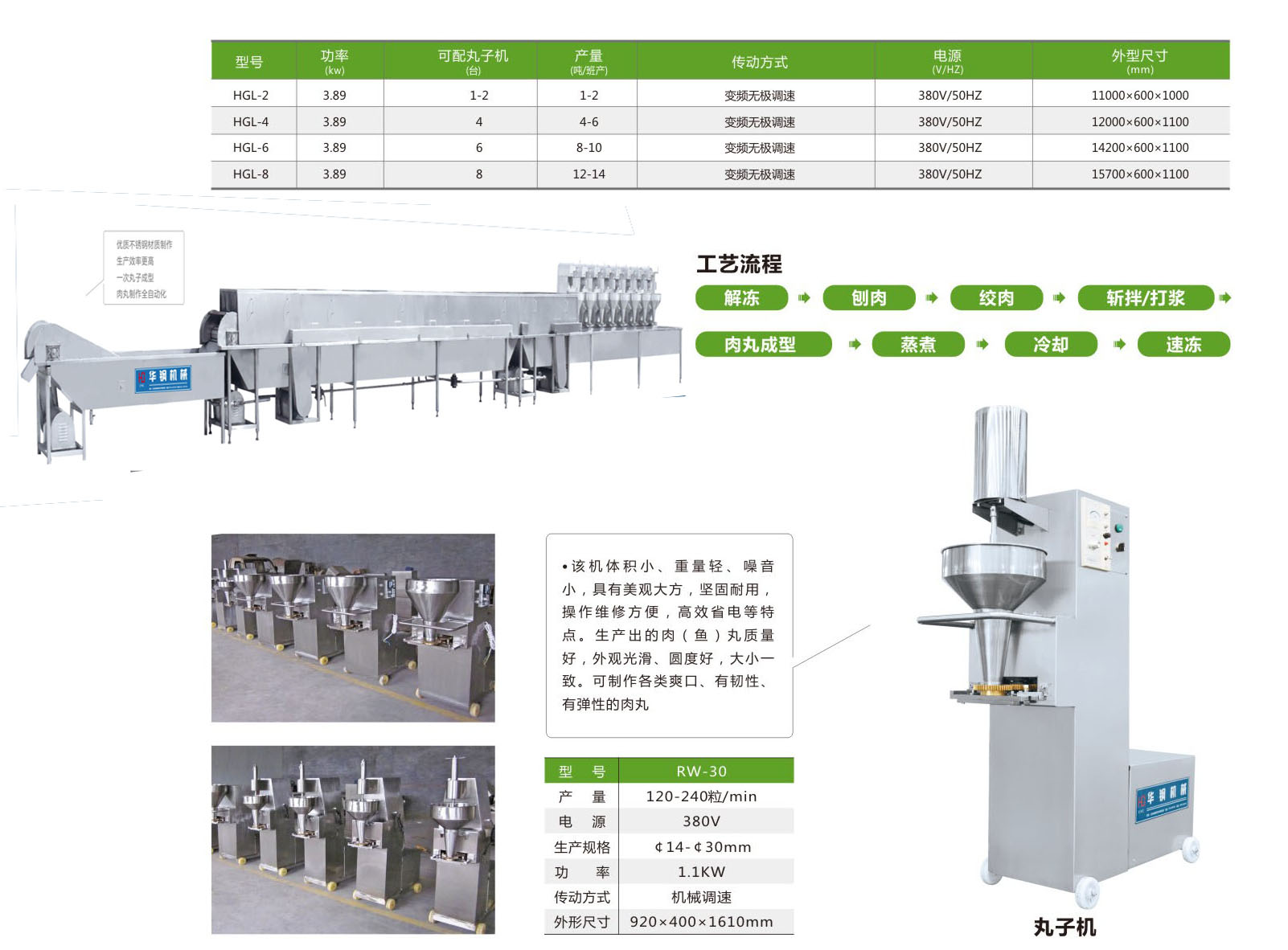 3、可生產肉丸、魚丸。生產出的肉(魚)丸質量好,外觀光滑,圓度好,大小一致,可生產出多種規格的產品。