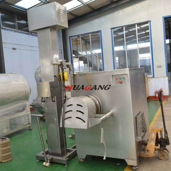 整機采用不銹鋼材質,分為移動式和固定式兩種機型,T200型提升機是專為200L標準肉車配套的提升設備,其功能是將物料提升到一定高度后,傾倒至設備的料斗中,以完成加料工作。該機采用全不銹鋼材料制造,鏈條傳動,便于清洗,美觀耐用。具有運行平穩、安全可靠、易于清潔、操作方便等優點,采用進口雙行程開關控制。工藝技術.
