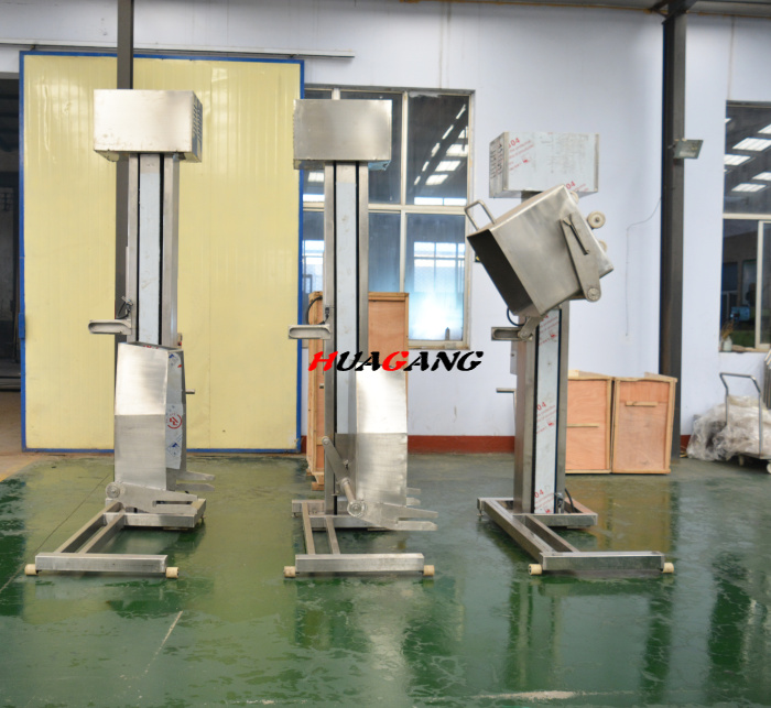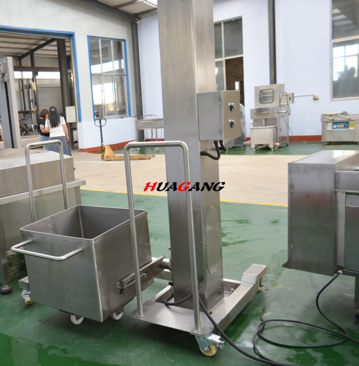 200肉料提升機能平穩地將200L標準料斗車提升到指定位置,并將料斗車內物料傾倒在指定設備內,減輕勞動強度,提高勞動生產率。