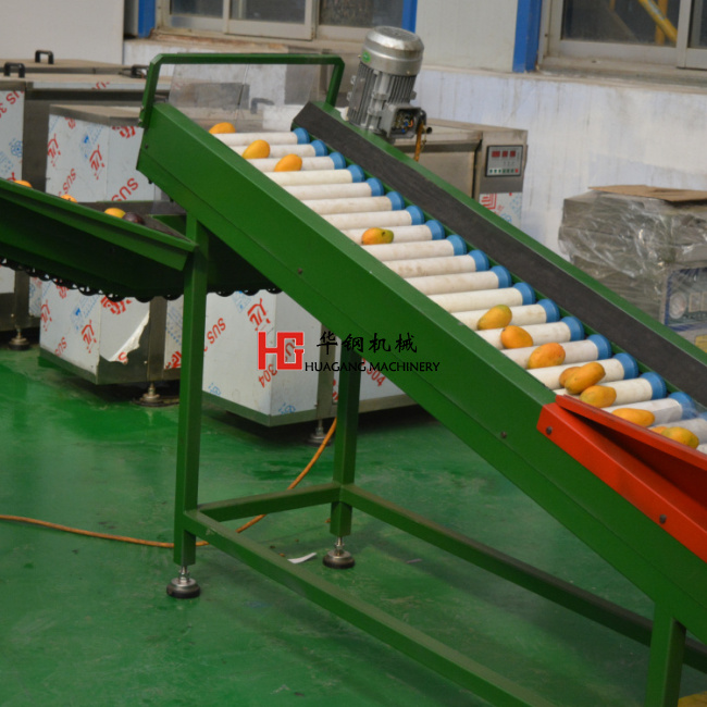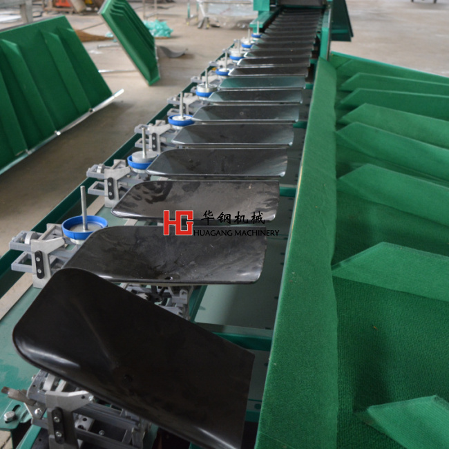 芒果分類的稱重分選機的圖片展示 采用天平與杠桿原理,利用盛料器重量與砝碼器所設定秤量,以游動時的移位與測量達到選擇重量的分等分級。在全自動的傳送中,快速正確的對各種需要分級的果蔬稱重分選,例如火龍果、梨、蘋果、芒果、桃、柑橘、沙糖桔、獼猴桃、西紅柿、馬鈴薯、地瓜、李子、柿子、洋蔥等,產生分級。不但秤量準確,而且具有不傷果實,效率高,易操作,使用范圍廣等特點,更能提升果品品質.