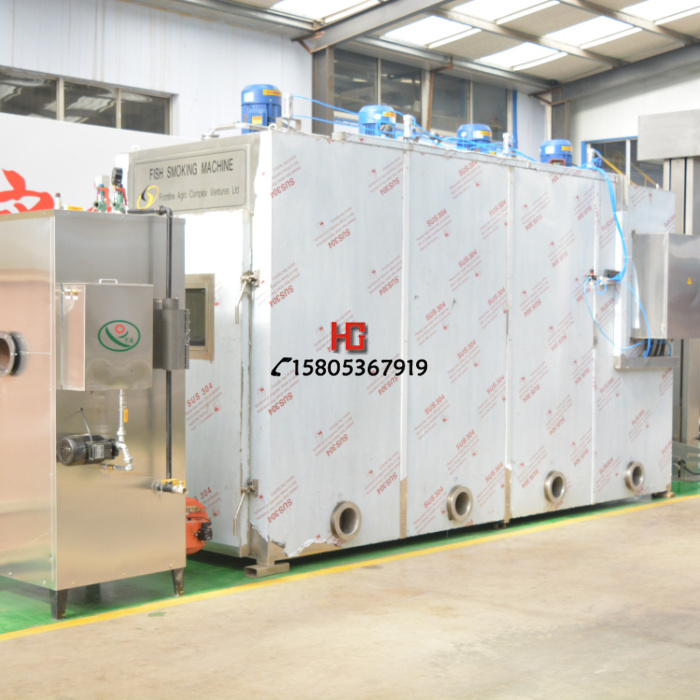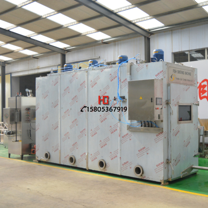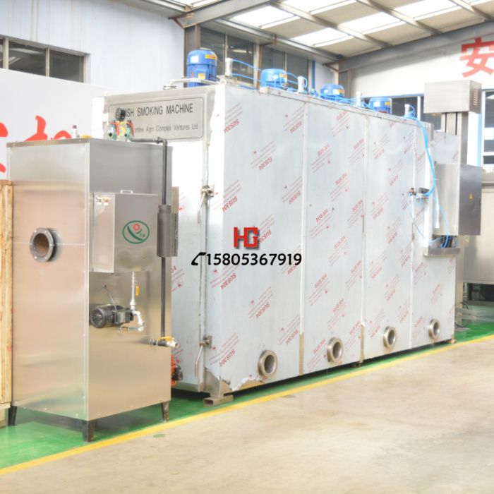 煙熏爐是各種香腸,臘肉,熏雞、烤鴨等肉產品,煙熏豆腐干等不可缺少的設備之一,具有蒸,烘烤、煙熏、排風等功能。根據客戶的反饋以及市場的需求,經過多年的摸索探索研制生產,加熱升溫裝置有蒸汽加熱或者電熱管加熱,同時集成了循環控制,發煙,烘烤干燥等系統,煙熏的過程縮短,提高生產效率;并能控制煙熏料(果木,木屑,稻殼米糠,白砂糖)的量,幫助生產企業有效控制了成本,對產品進行了性能高,設備更合理的改進,使其加熱速度、烘干效果、煙熏效果都達到了理想的效果。