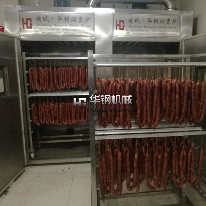 在臘肉生產的過程中,煙熏是十分重要的環節,它對產品的色澤、風味有很大的影響,而傳統的柴火加熱熏肉方法是無法使得臘肉熏制均勻,同時煙灰可能粘連在肉品上,影響臘肉的口感。隨著市場上煙熏爐的出現,進而解決了傳統熏制的弊端。市場上煙熏爐除了具有臘肉熏制的功能,還具有蒸煮、干燥、烘烤、排風、清洗等功能,可謂是一機多用。