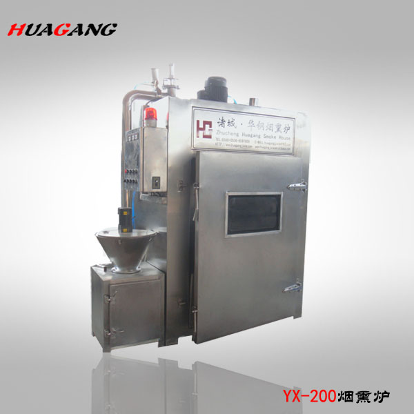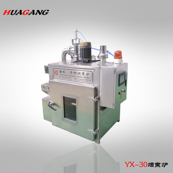 煙熏爐是各種香腸,臘肉,熏雞、烤鴨等肉產品,煙熏豆腐干等不可缺少的設備之一,具有蒸,烘烤、煙熏、排風等功能。根據客戶的反饋以及市場的需求,經過多年的摸索探索研制生產,加熱升溫裝置有蒸汽加熱或者電熱管加熱,同時集成了循環控制,發煙,烘烤干燥等系統,煙熏的過程縮短,提高生產效率;并能控制煙熏料(果木,木屑,稻殼米糠,白砂糖)的量,幫助生產企業有效控制了成本,對產品進行了性能高,設備更合理的改進,使其加熱速度、烘干效果、煙熏效果都達到了理想的效果。從而為用戶提供了更好、更可靠、更衛生和經濟的選擇。該設備整體設計新穎、加工精制,美觀。整體采用不銹鋼制作,采用耐高溫聚氨酯發泡材料保溫,保溫效果好、升溫快,節約能源。該設備的循環系統采用雙速循環風機,合理的分配進風、排風、補風機構,大限度優化箱體內部氣流循環狀態,確保整個箱體物料加工過程中可控、均勻,達到了低耗產出。而關于電氣控制方式,該設備采用可編程控制器及繼電器,電磁閥等關鍵電氣元件均采用進口產品,操作簡便,可自動控制時間,爐內溫度。具有優異的發煙及循環系統,可使爐內的煙霧均勻分布,從而使肉制品著色均勻,色澤美觀,保證產品具有較高的出品率。符合國內消費者的消費意識和相關部門對此類產品在食品安全的相關規定。