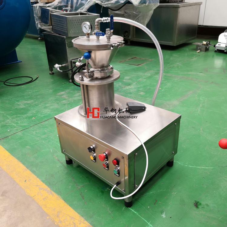 實驗室用小型真空灌腸機整機采用不銹鋼制成,外型美觀,結構緊湊合理,密閉防水,易于清洗.用于制作肉醬灌腸,腳踏開關點動方式或連續灌腸,灌裝料斗配有真空裝置,使得產品是處于真空狀態下進行灌裝,可根據加工需求不同型號的腸管,可根據腸衣的大小進行更換.