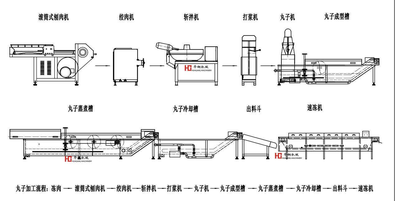 大型牛肉丸加工流水線 肉丸流水線設備流程