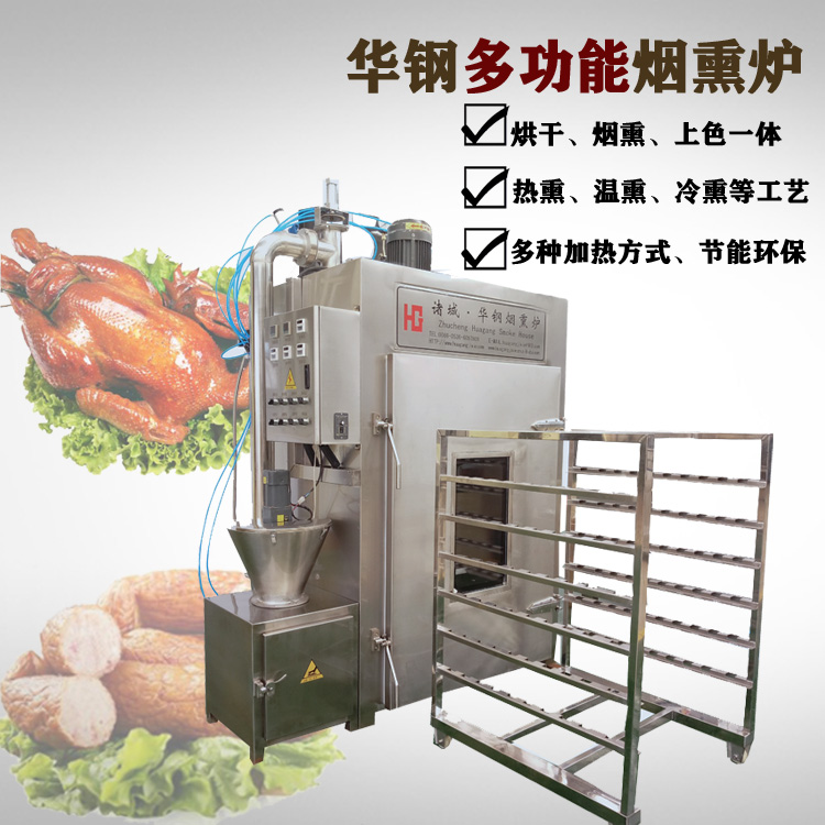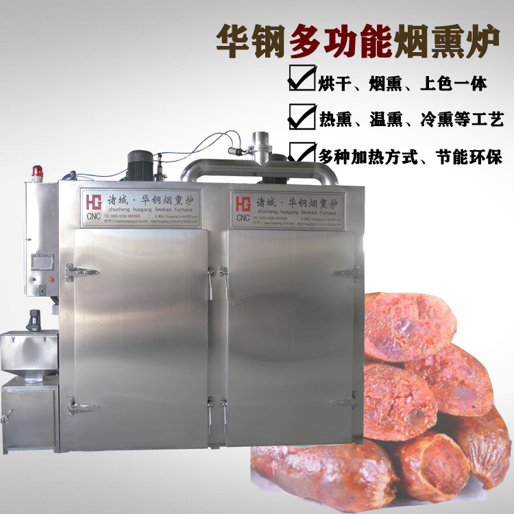 諸城華鋼機械生產的煙熏爐可以用于食物的蒸煮,烘干,煙熏,上色,可以用于加工肉制品,豆干制品,還有腸制品,使用范圍廣。型號有30型 50型 100型 150型 200型 1000型可以根據客戶的需要量身定做。分為內置發煙和外置發煙,加熱方式有電加熱和蒸汽加熱的兩種。