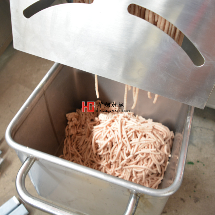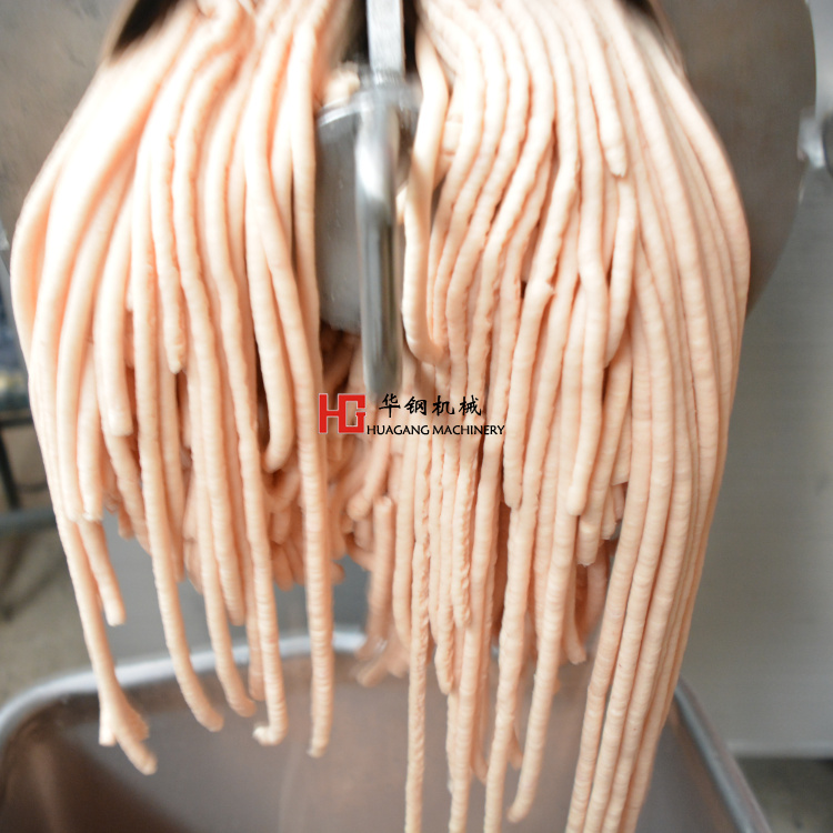 250凍肉絞肉機、大肉塊凍肉絞肉機是肉制品生產行業中使用范圍較廣的一種肉食加工設備 。它能將-18℃的凍肉凍盤直接絞成顆粒狀。它依靠螺桿將料斗中的原料肉推到預切切板處,通過螺桿的旋轉擠壓使孔板與絞刀產生相對運轉,從而將原料肉切成顆粒形狀,確保了肉餡的均勻性。通過也板的不同組合可達到理想要求的不同肉餡。