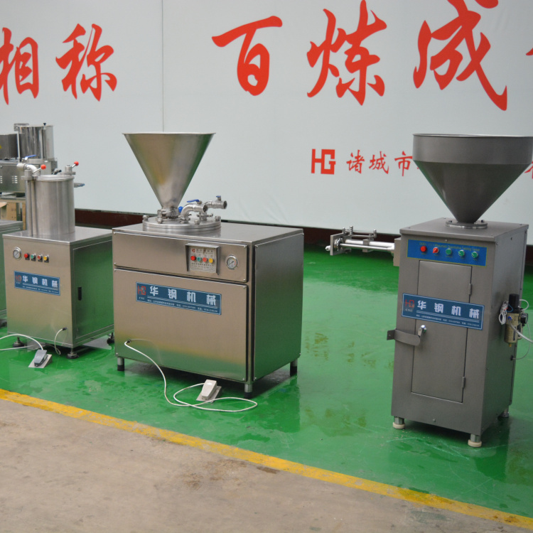液壓灌腸機是加工腸類制品的設備,能灌制大、中、小各種規格的腸制品。此機外形美觀、做工精良、操作方便、使用安全可靠。機器的料斗、閥門、灌腸管以及整機外包裝均采用 不銹鋼制造,符合食品衛生要求。