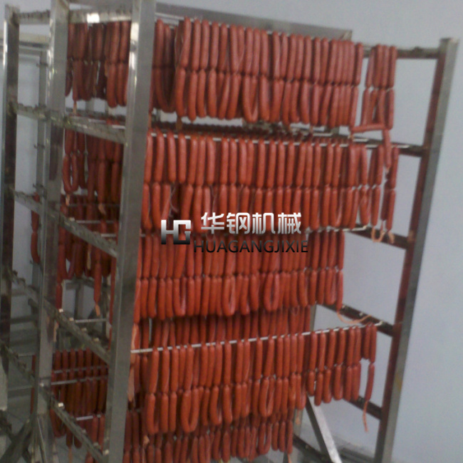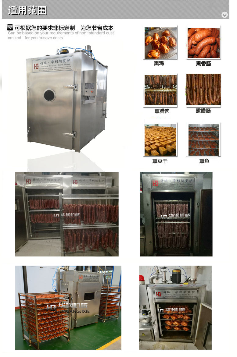 香腸煙熏爐,香腸烘干機(jī),香腸烘干設(shè)備華鋼機(jī)械常年提供,食品煙熏爐發(fā)煙系統(tǒng)外置式木粒、木屑發(fā)煙系統(tǒng),不僅使產(chǎn)品產(chǎn)生果木香氣,而且可以使產(chǎn)品熏成由淺入深的金黃色。分體式糖爐發(fā)煙系統(tǒng),可熏制傳統(tǒng)的中式產(chǎn)品,產(chǎn)生糖熏味道,并且顏色可以控制,可以成為棗紅色。兩種發(fā)煙系統(tǒng)同時使用能產(chǎn)生特有煙熏香氣和顏色。門上木粒發(fā)煙系統(tǒng),采用世界上的內(nèi)循環(huán)發(fā)煙工藝,低氧狀態(tài)發(fā)煙,縮短煙道長度,降低能耗,減少設(shè)備占地面積。