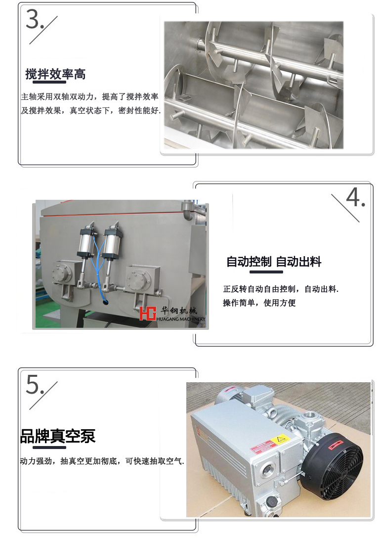 4、真空拌餡機(jī)在真空狀態(tài)下,餡料攪拌均勻,充分膨脹、彈性好、色澤鮮艷并限度地析出蛋白質(zhì)。