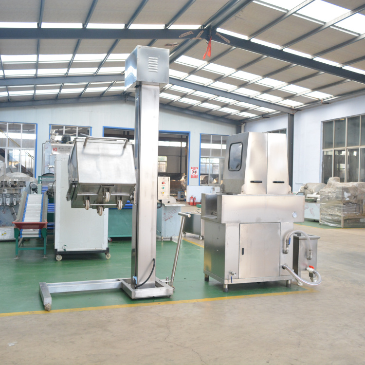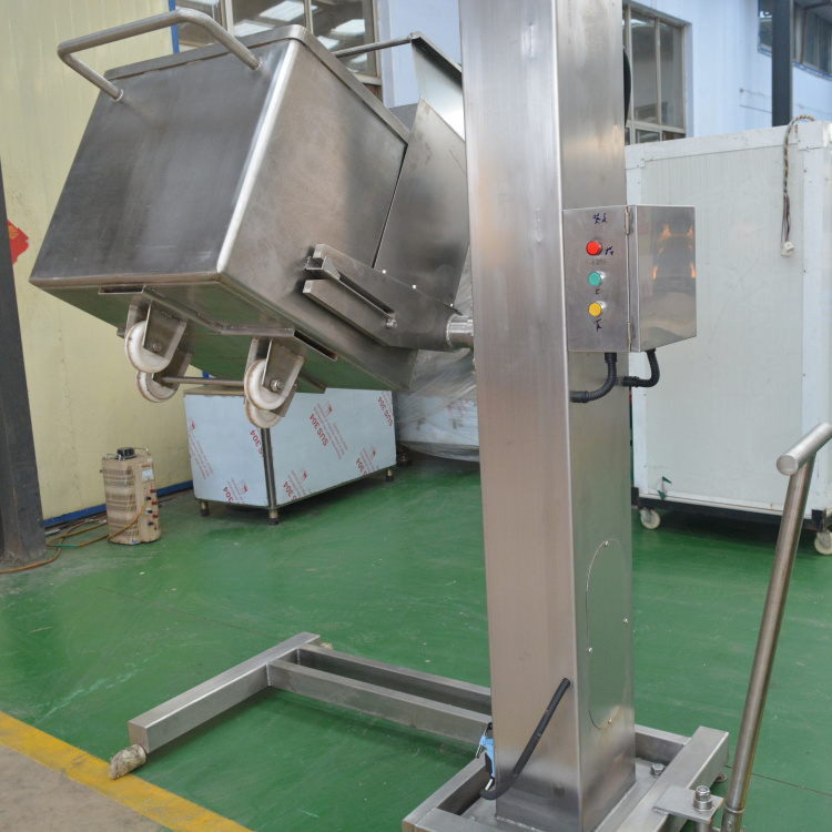 整機采用不銹鋼材質(zhì),分為移動式和固定式兩種機型,T200型提升機是專為200L標準肉車配套的提升設備, 其功能是將物料提升到一定高度后,傾倒至設備的料斗中,以完成加料工作。該機采用全不銹鋼材料制造,鏈條傳動,便于清洗,美觀耐用。。具有運行平穩(wěn)、安全可靠、易于清潔、操作方便等優(yōu)點,采用進口雙行程開關控制。工藝技術.