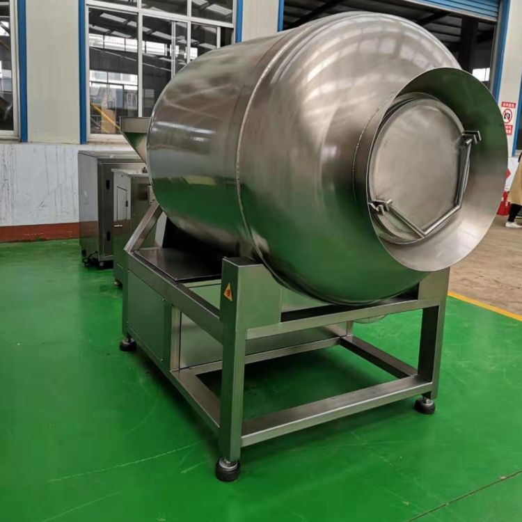 真空滾揉機是在真空狀態下,利用物理沖擊原理,讓物料在滾桶內上下翻動,相互撞擊摩擦,產生大面積均勻分布的按摩和腌漬作用,使淹制液在物料內均勻分布更加有利于鹽容性蛋白質以快的速度限度地淅出,從而增加產品的持水性,很好地改善產品的彈性,切片性和口感,在程度上提高產品的出品率。