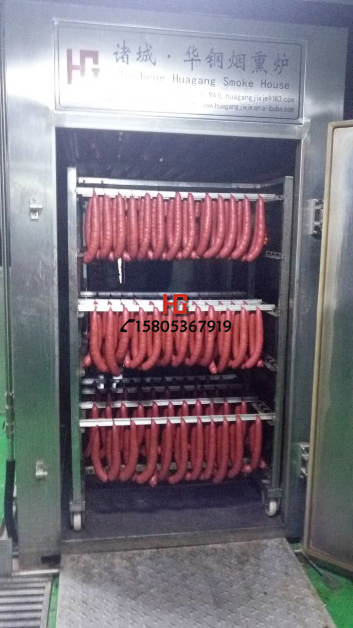華鋼公司的煙熏爐是集蒸煮、烘干、煙熏、上色于一體的煙熏爐,經(jīng)過(guò)煙熏后食品的顏色好看,還有一種煙熏后的香味,讓人感覺(jué)香而不膩,也能達(dá)到環(huán)保效果,代替了傳統(tǒng)的 煙熏爐方法,節(jié)省了工人的勞動(dòng)了,提高工作效率,更增強(qiáng)了食品的口感及彈性。