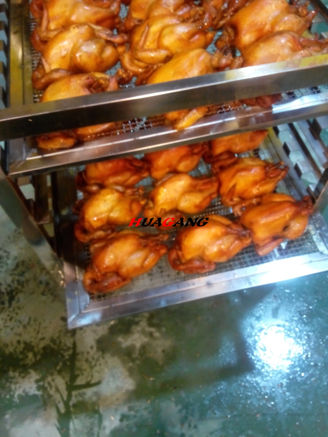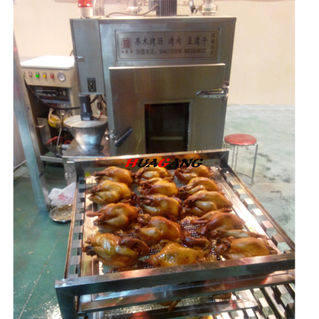 熟食店/加盟店是怎么使用煙熏機器設(shè)備來熏熟食的? 華鋼牌小型煙熏爐用于煙熏肉制品熟食,熏雞,熏鴨、熏鴿、烤腸,烤雞,熏魚,烤鴨,煙熏豆腐干臘肉以及家禽,水產(chǎn)品等等熏制產(chǎn)品,,烘干,上色一次成型.煙熏色澤好,口感更佳.質(zhì)量保證,技術(shù)優(yōu)良,操作方便.經(jīng)過煙熏后食品的顏色好看,還有一種煙熏后的香味,讓人感覺香而不膩,也能達到環(huán)保效果,代替了傳統(tǒng)的煙熏爐方法,節(jié)省了工人的勞動了,提高工作效率,更增強了食品的口感及彈性。主循環(huán)風(fēng)扇送風(fēng)均勻,使?fàn)t體內(nèi)溫度均勻,采用設(shè)定參數(shù)方式,通用性廣,自動運行中的參數(shù)可修正。 煙熏箱