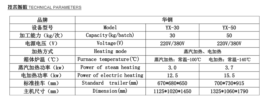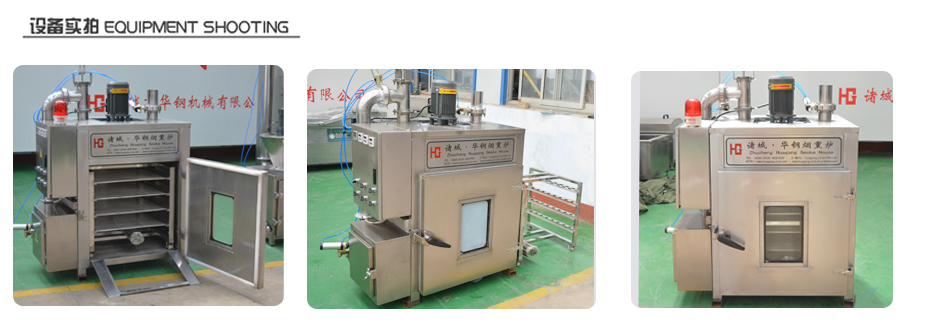 華鋼公司生產的30煙熏爐設備一直備受廣大肉食中小企業,自營店面,實驗室等廠家的親睞。該設備不僅外觀精巧,占地面積小,無噪聲,使用方便,而且對生產周圍環境不會照成污染,安全性能高等優點。該設備材質全部采用SUS304不銹鋼材質。更符合食品級要求! 該煙熏爐設備發煙裝置為標準內置發煙,在爐體內底部中心位置,配有高溫發煙盤裝置,在我們指定的發煙盒位置可根據客戶要求,放置 木屑,果糖,木粉,稻殼米糠等煙熏發煙產品,以對產品進行煙熏。當客戶的產品通過推車進到煙熏爐內,關好爐門,通過左側一系列控制開關,打開烘干開關,發煙開關等.來滿足客戶對產品需求的加工生產。爐門裝置配有高溫雙層玻璃視窗,可看到爐體內部產品上色情況等。