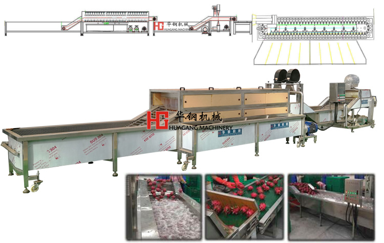 火龍果清洗之后可加上風干機部分,風干機是采用常溫風對火龍果表面水份進行吹干。我們支持加工定制,非常歡迎來我們公司參觀考察,討論火龍果的具體設備問題。