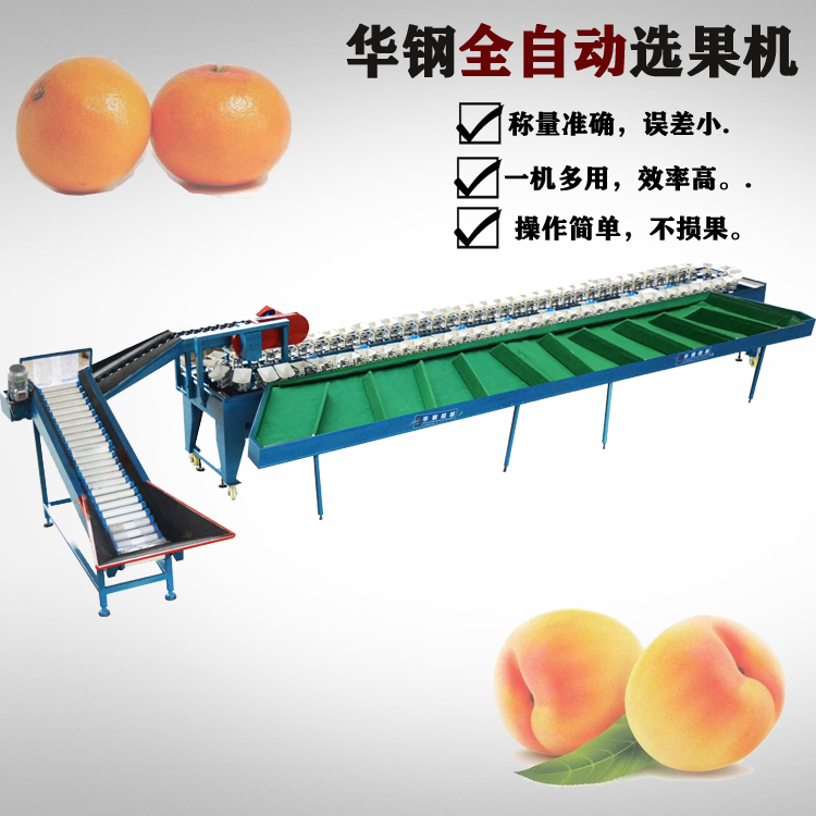 直式選果機(大果盤) 采用天平與杠桿原理,利用盛料器重量與砝碼器所設(shè)定秤量,以游動時的移位與測量達到選擇重量的分等分級。在全自動的傳送中,快速正確的對各種需要分級的果蔬稱重分選,例如火龍果、芒果,南瓜等較大較圓的產(chǎn)品的分級。不但秤量確,而且具有不傷果實,效率高,易操作,使用范圍廣等特點,更能提升果品品質(zhì),增強果品市場競爭力,是農(nóng)產(chǎn)品分級制度的理想設(shè)備.