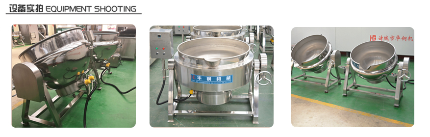 夾層鍋通常由鍋體和支腳組成。鍋體是由內(nèi)外球形鍋體組成的雙層結(jié)構(gòu)形式,中間夾層。有固定式、可傾式、攪拌式等樣式。夾層鍋具有受熱面積大、熱效率高、加熱均勻、液料沸騰時間短、加熱溫度容易控制、外型美觀、安裝容易、操作方便、安全可靠等特點。夾層鍋廣泛應(yīng)用于各類食品的加工,也可用于大型餐廳或食堂熬湯、燒菜、燉肉、熬粥等,是食品加工提高質(zhì)量、縮短時間、改善勞動條件的良好設(shè)備。