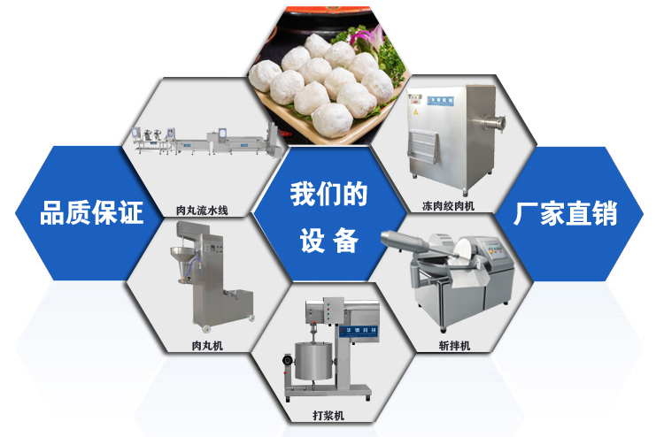 肉類打好漿后,經過肉丸成型機成型,根據不同的要求制作丸子、圓形丸等,這道工序決定了丸子的美觀。