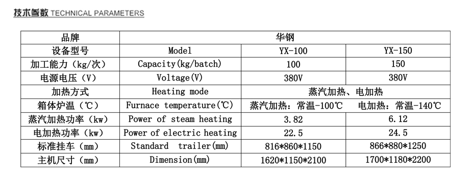 華鋼系列YX-100煙熏爐可根據客戶產品要求專門定制。